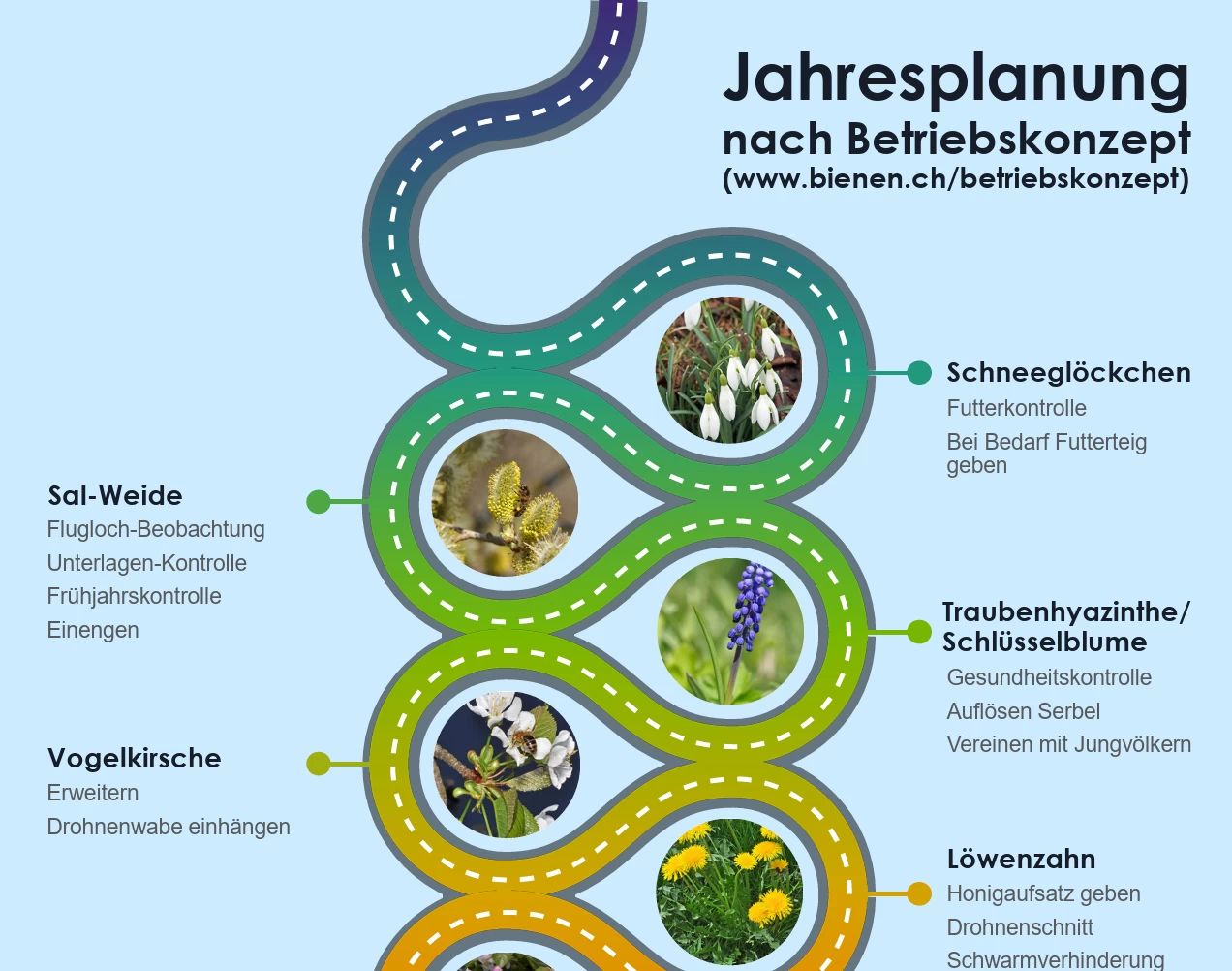 Planning the beekeeping season makes it possible to prepare optimally for upcoming activities with our bees. Thanks to the operating concept developed by apiservice, this is easy to implement for all beekeepers. It is an indispensable tool for effective apiary management. The operating concept can be personalised and allows for a clear visualisation of beekeeping activities and the planning of the appropriate work.