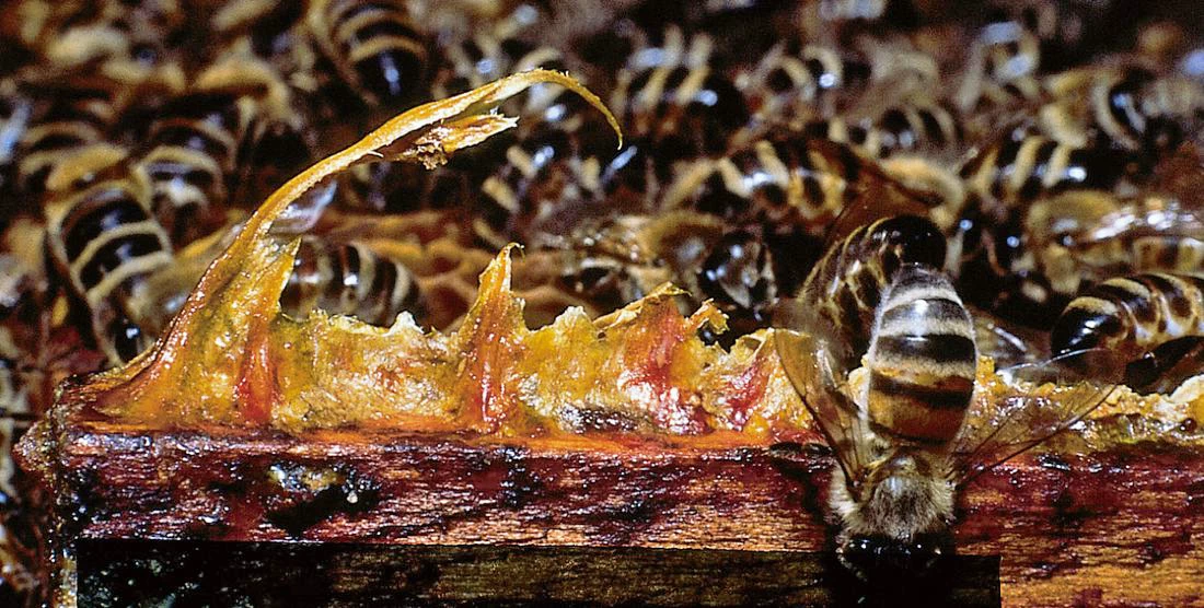 Only a small proportion of foragers collect propolis (1% or less). By weight, this is indeed the most marginal type of collection in a colony: on average 50 to 150 g per year; however, the most “propolising” honey bee subspecies, the Caucasian bee, may collect up to 1 kg. Nothing is known about the criteria on which bees base their choice of resin sources.