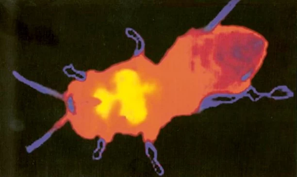 In the bee, the same phenomenon occurs in the thorax, which contains the antagonistic flight muscles, the dorso-ventral and longitudinal muscles. If these muscles contract simultaneously, no wing movement results (isometry), but only heat production, which can locally reach a temperature exceeding 40°C within a few minutes.
