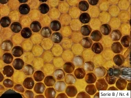 As long as the colony is able to remove all diseased larvae from the hive, no typical symptoms appear. Clinical signs become visible only when, due to the spread of the disease, insufficient brood care and reduced cleaning behavior (diseased larvae remain in the combs), symptoms develop—generally only when the disease has already reached an advanced stage.