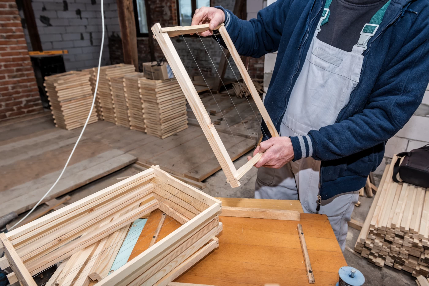 carpenter | workshop | person | industry | carpentry | making | beehive | frame | bee | timber | wire | craftsman | construction | job | man | work | technology | wooden | safety | repairman | production | produce | craft | wood | occupation | tool | wood