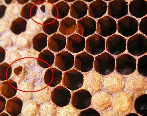 • Quelques cellules restent operculées, les abeilles n’éclosent pas en particulier au bord de l’air de couvain